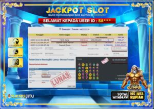 Selamat kepada User id : SA*** Telah berhasil mendapatkan kemenangan besar pada permainan SLOT GATES OLYMPUS 1000 kemenangan Sebesar Rp.105.000.000, Setelah mengisi formulir withdraw dengan kurung waktu hanya 5 – 10 menit pihak suksesjitu sudah melakukan transfer kepada pemilik Userid dan dana sudah dapat di cairkan oleh pemenang. Bukti pembayaran yang kami berikan merupakan bukti pembayaran yang SAH / VALID yang langung di dapatkan melaui tanda transfer transaksi dari Bank yang di tuju.