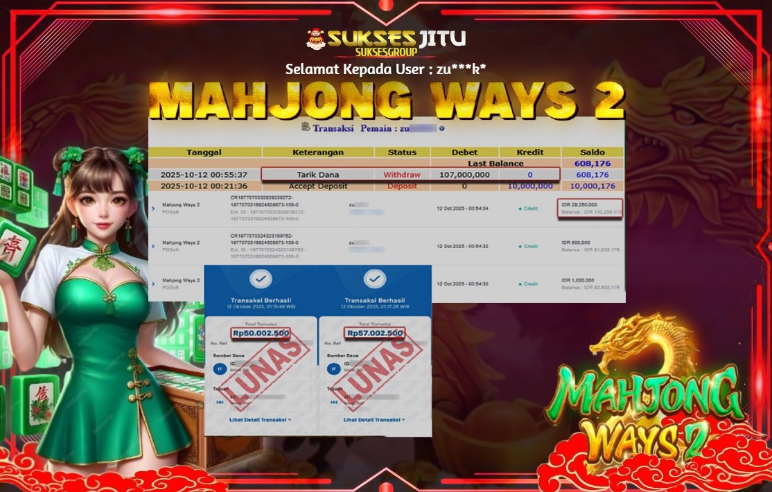 SUKSESJITU JACKPOT SLOT MAHJONG WAYS 2 Rp.107.608.000.,- LUNAS